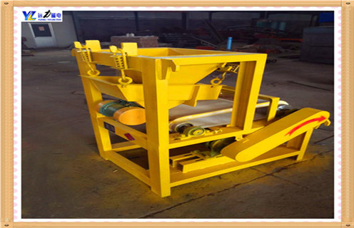 2、礦粒經輸送帶被送入上磁輥分選,由于鐵礦的礦粒有磁性,立即被強磁場吸附在磁輥上,脈石粒(雜石、砂土)由于沒有磁性(磁性很弱),磁輥的強磁對它不產生吸力,隨著磁輥的轉動,礦粒一直被吸在磁輥上,而脈石粒在磁輥轉到前端位置時被拋出掉在隔礦板的前面(通過改變隔礦板角度的大小可調整精礦的品位),礦粒繼續被磁輥帶到脫磁區時自動掉入一選集礦斗收集為精礦成品。